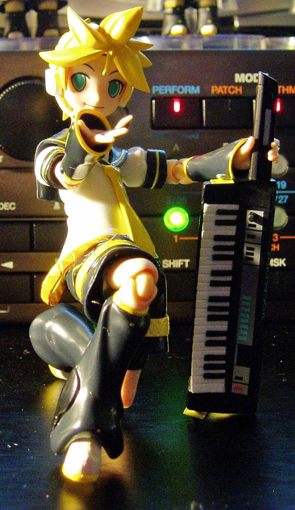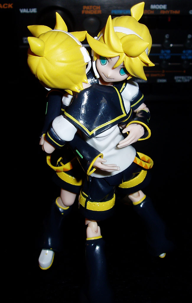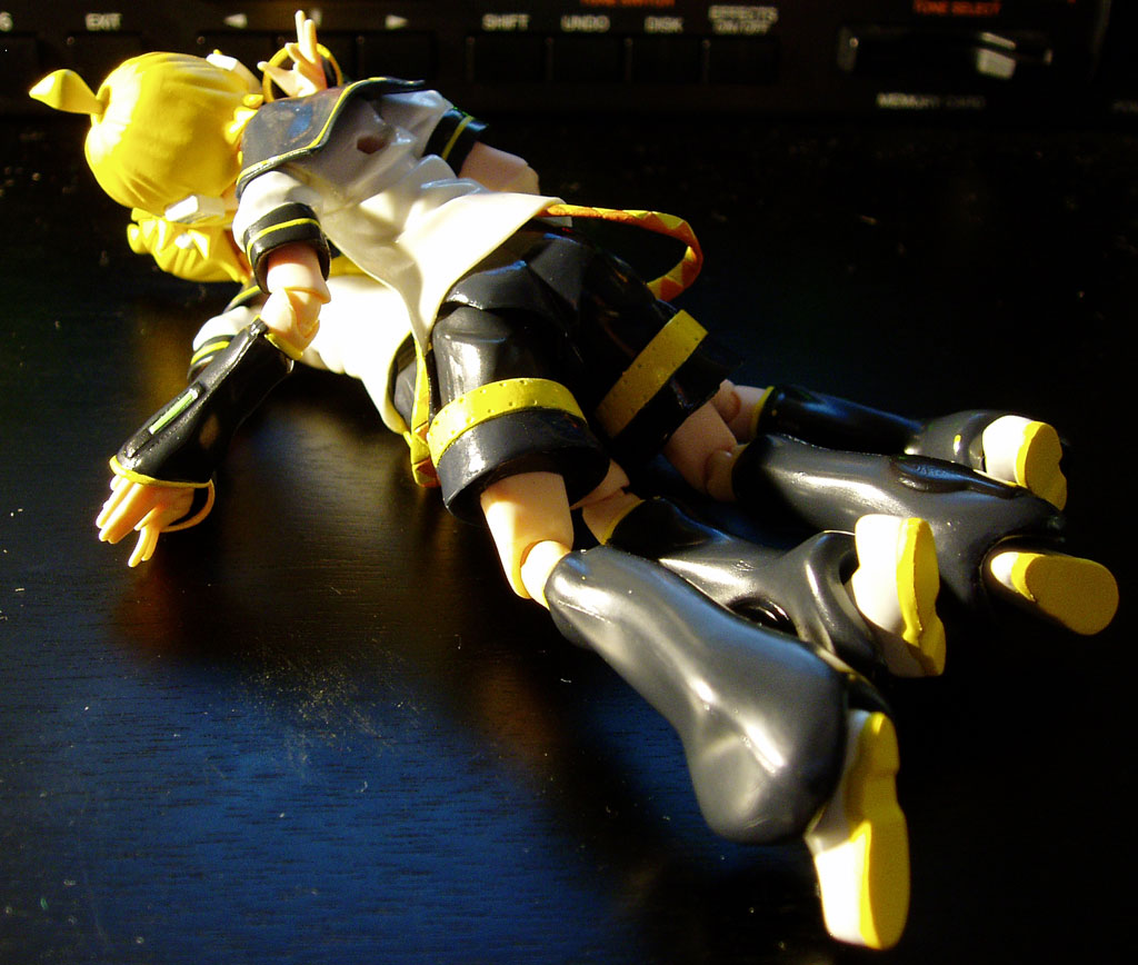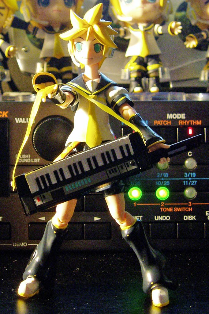 と人に言われて、それならばと 何か違った話題を取り入れようと思いましたが その矢先にfigma鏡音レン君が届いてしまったのでした。 amazonで予約する際、数が限定されていたので 迷わず上限の三人をお迎えすることに。 実は僕はfigmaの様な間接の可動フィギュアには あまり食指が動かなかったんですけれども 届いてみたらそんな気持ちはどこ吹く風。 あっと言う間に数時間が経過していたとさ。 ねんどろいどもそうでしたが、 なんたって小物類の出来が非常に良い。 ショルキーの鍵盤もちゃんと立体的に作られていて、思わず感激。 スタンドを使って立てるのは勿論のこと 上手くバランスを取れば、スタンド無しで自立出来るのが凄い。 自在に動かせるfigmaならではなんでしょうね。 そんなわけで数枚ほど撮影してみました。 ストラップを肩にかける直前 ギターソロには負けられない! とばかりにアグレッシブにシンセソロ。 僕もショルキーをこんな風に演奏してみたいものです。 お気に入りの一枚。 「ほら、こっち来なよ。一緒に演ろう!」 という台詞が聞こえてきそう。 可愛いというより、カッコイイですね。 そうこうしているうち、一人じゃ物足りなくなって来まして もう一人のレン君に箱から出てきてもらいました。 で、二人のレン君がいるとすれば起りえることは一つ…。 以下の写真、普通の人は不快感を覚える要素が溢れ出ているので サムネイルにモザイクをかけました。 覚悟完了してからクリックしてください。 …本当にすみませんでした。 ツイート @komsoをフォロー PR |
