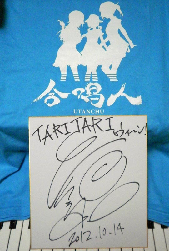 会場に来てくれた皆様、ニコ生をご覧になった皆様 本当にありがとうございました! 久しぶりの長丁場ということで、始まる前は不安もありましたが 始まってみればそんなものは何処吹く風 最後までテンションMAXで突っ走りました! これまでに無いくらいハシャギましたよ、ええw 打ち上げでもお酒を結構呑んでしまい(弱いのに) 帰宅後はそのままバタンキューしてしまいました。 楽しかった。本当に楽しかった! 夏に放送されていた「TARI TARI」というアニメ 僕も好きで毎週観ていたのですが… 出演者の一人、ウィーン役の花江夏樹さんが なんとC&Cのファンとのことで観に来てくださいまして サインと合唱人(うたんちゅ)Tシャツを頂いてしまいましたよ! これは二重の意味で嬉しい! ツイート @komsoをフォロー ツイート @komsoをフォロー PR |